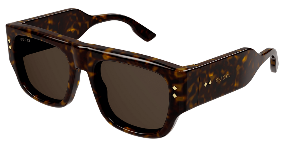 Occhiali da sole linea Gucci Logo modello GG1262S variante colore 002 tartaruga scuro lucido con lenti color tartaruga.
